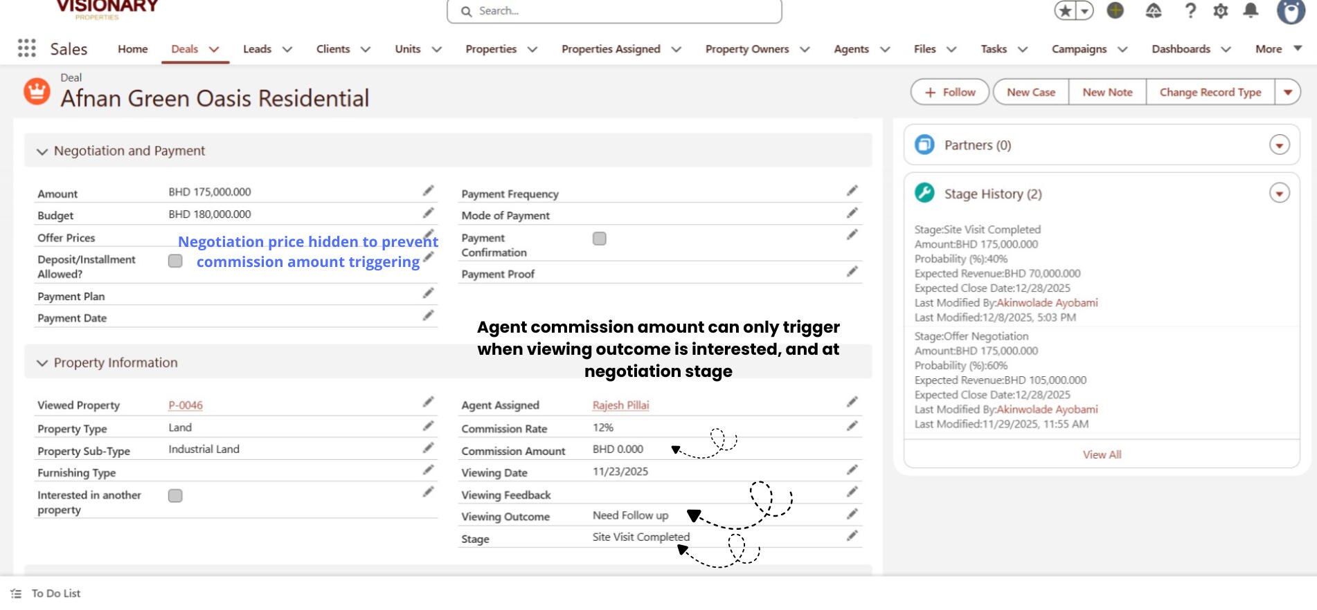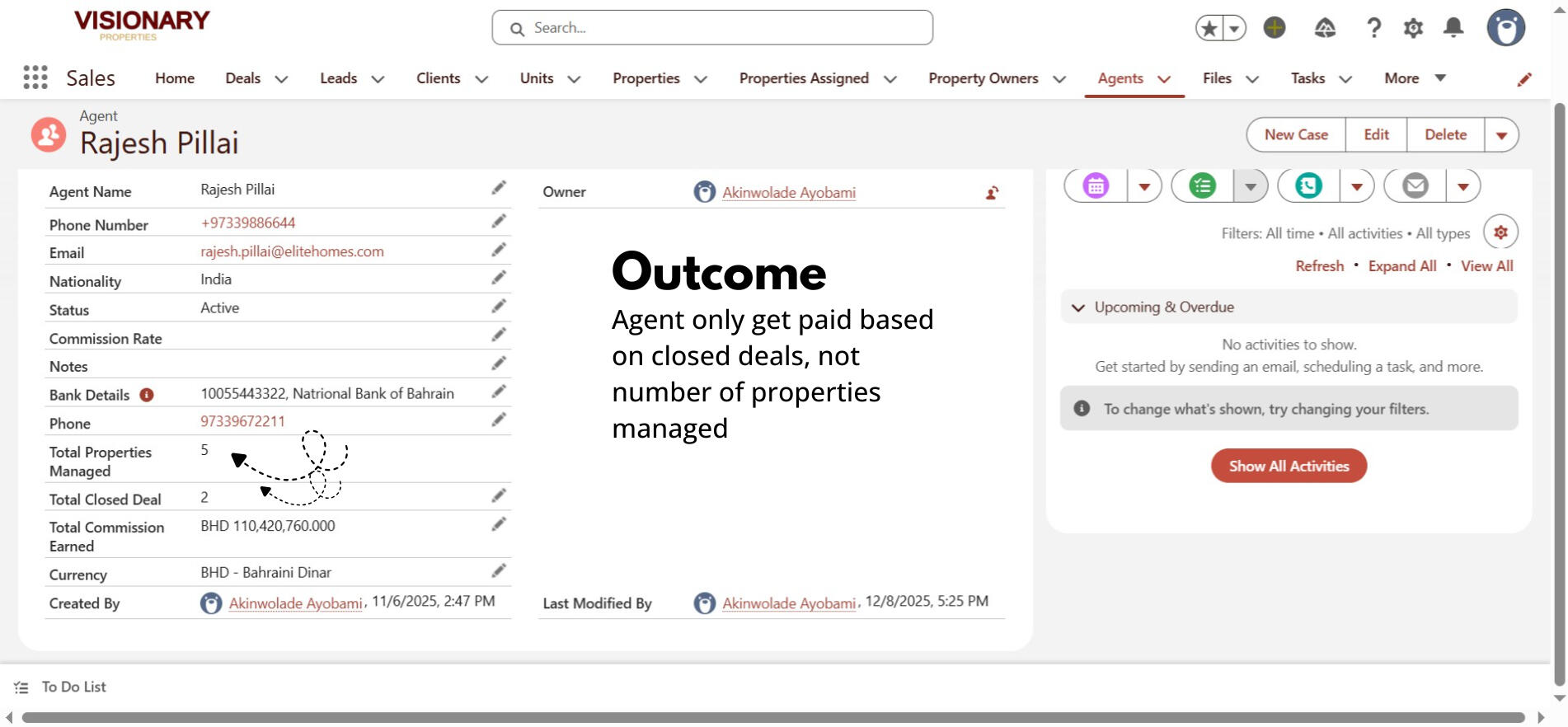 The agency had no structured way to track which agent was responsible for a property, how many properties they managed, or what performance looked like. Commission payouts were also risky because the company had no control system to ensure an agent only got paid when a deal was officially closed. This resulted in: