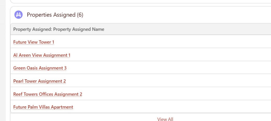 To properly manage assignments, I created a junction object called Property Assignment that allows: