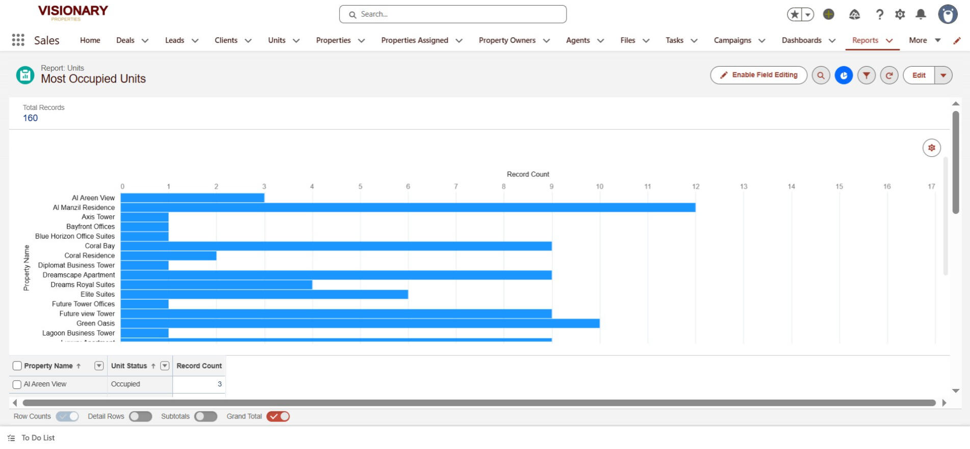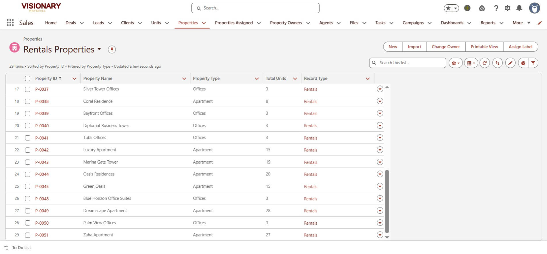Total number of properties an agent manages